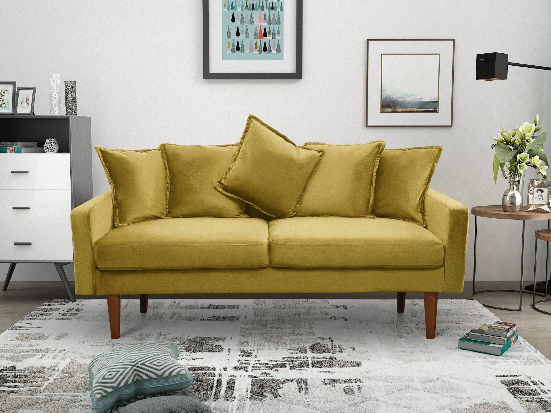 * Plush velvet upholstery and stylish square arm for stylish look and comfortable feel